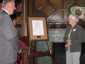 Ann Geddes welcomes guests as Emily Carr impersonator Molly Newman looks on (Copyright Merna Forster)